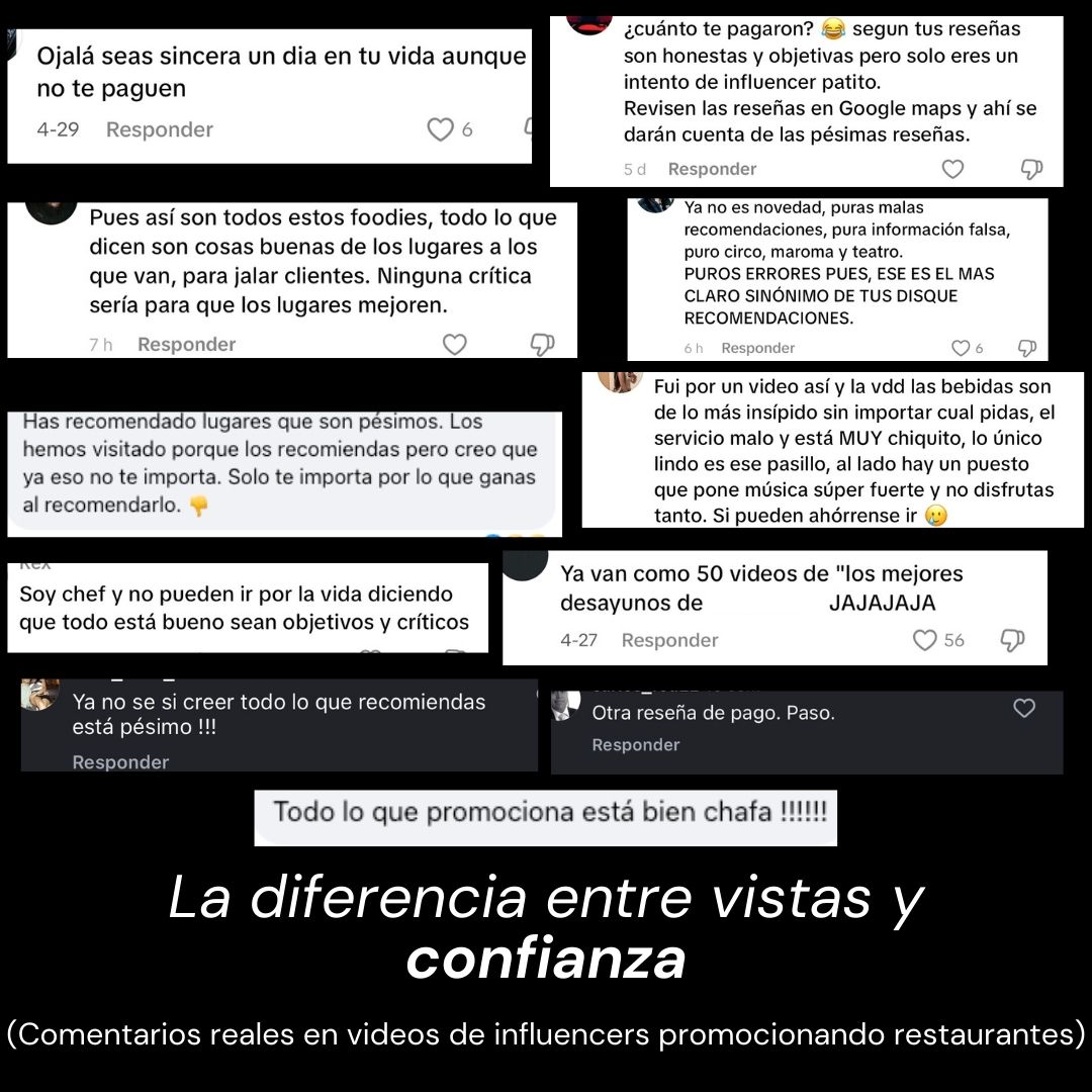 No creemos que un restaurante deba depender de influencers o modas pasajeras para atraer clientes. Muchas colaboraciones generan vistas, pero no confianza ni clientes reales.